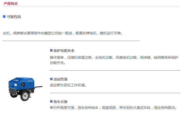 LUY系列小型移動(dòng)式螺桿空氣壓縮機(jī)是憑籍集團(tuán)公司全球同業(yè)技術(shù)領(lǐng)先者的地位及豐富得經(jīng)驗(yàn),加上對(duì)中國(guó)市場(chǎng)需求 及運(yùn)行工況得充分理解,產(chǎn)品針對(duì)國(guó)內(nèi)運(yùn)行工況設(shè)計(jì),壓縮機(jī)系統(tǒng)主要零部件由總部統(tǒng)一配送,并在統(tǒng)一標(biāo)準(zhǔn)的 生產(chǎn)線上進(jìn)行總裝,富達(dá)機(jī)械值得信賴(lài)。